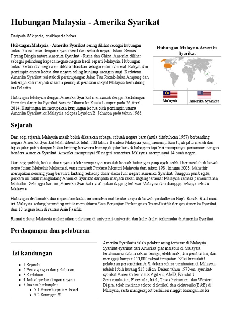 Hubungan Malaysia Amerika Syarikat Wikipedia Bahasa Melayu Ensiklopedia Bebas Pdf